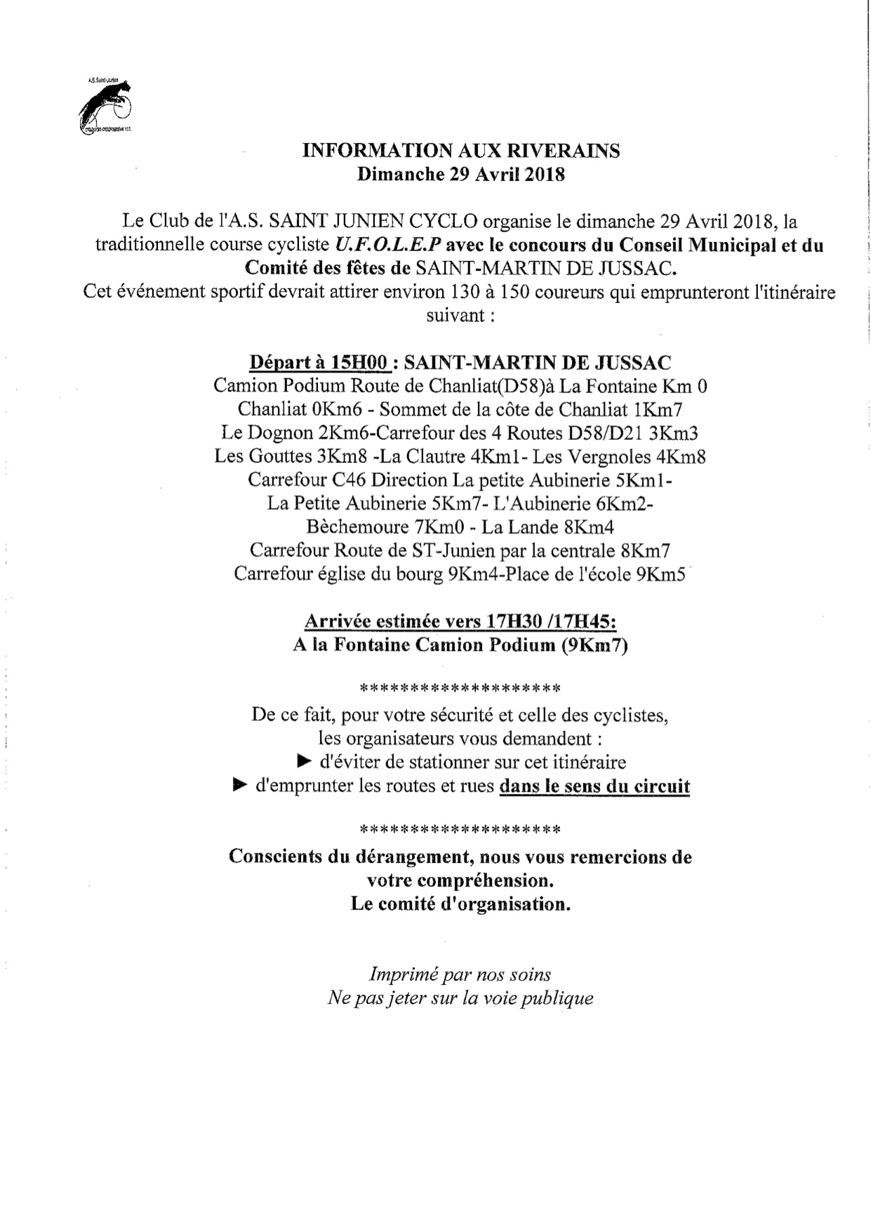 course cyclo 29 avril 2018